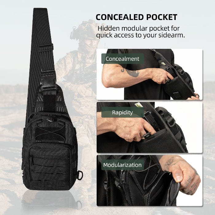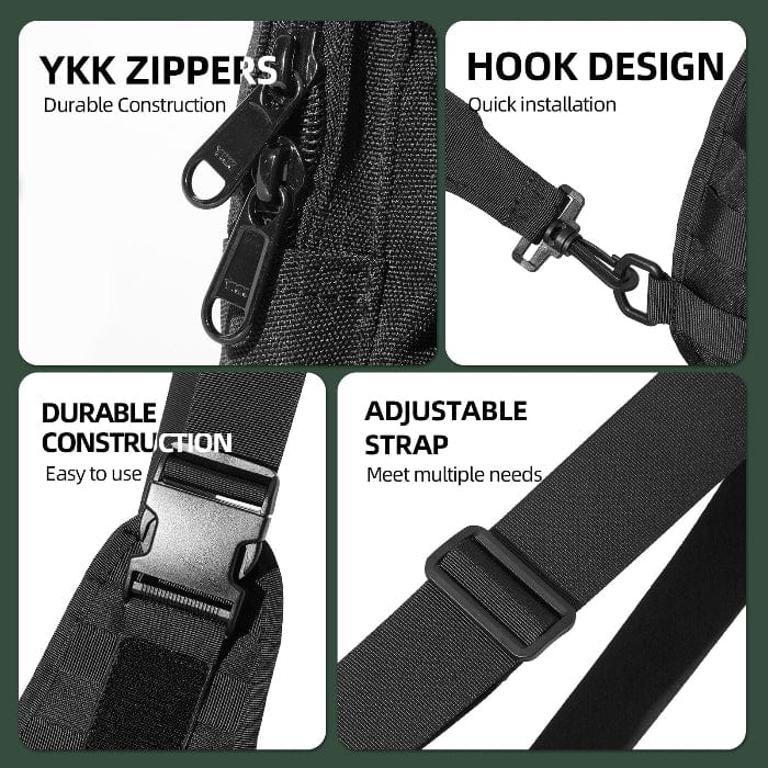 The sidearm bag serves as a stylish tactical belt for daily use by security personnel and tactical enthusiasts. Made from 1000D nylon and featuring YKK zippers, the bag ensures long-lasting durability. Additionally, there is a hidden modular pocket at the back of the bag for quick release of your side piece (suitable for all types of sidearms).