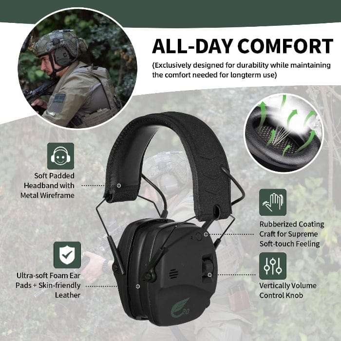 • Advanced Noise Reduction: Achieve peace of mind with a Noise Reduction Rating (NRR) of 22 dB. Our electronic muffs actively reduce harmful noise below 82 dB and enhance the clarity of surrounding low-level sounds, such as conversations and announcements.