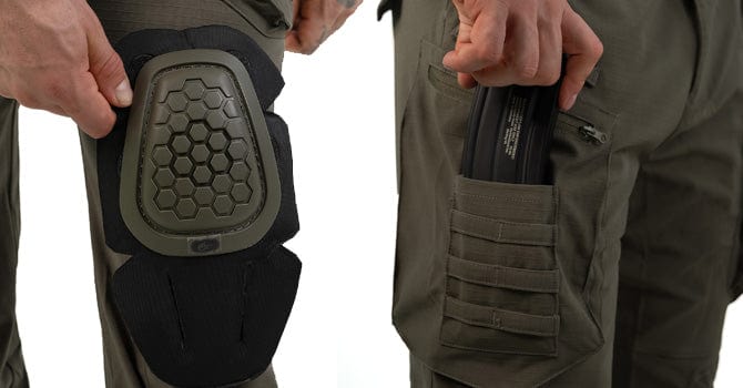 Includes a knee pad socket for our professional knee pad, and two M4 magazine pockets with MOLLE on top for additional equipment. We’ve reinforced the stitching in the weaker areas to ensure the garment doesn’t break down over time.